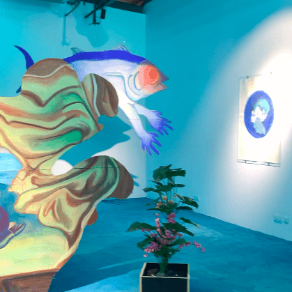 L’œuvre de Yesmine Ben Khelil se construit sous la forme d’un monde parallèle, dans une réalité inversée. Elle permet de faire l’expérience d’un nouveau Dar El Hout extrait de son contexte colonial, sauvée de la sclérose dans laquelle le gouvernement tunisien a par la suite laissé périr l’institution. C’est dans une temporalité déréglée, par l’étrange et le fantasmagorique que l’artiste a partagé sa vision de Dar el Hout, bien plus colorée et poétique, plus vivante, tout à fait métamorphosée.