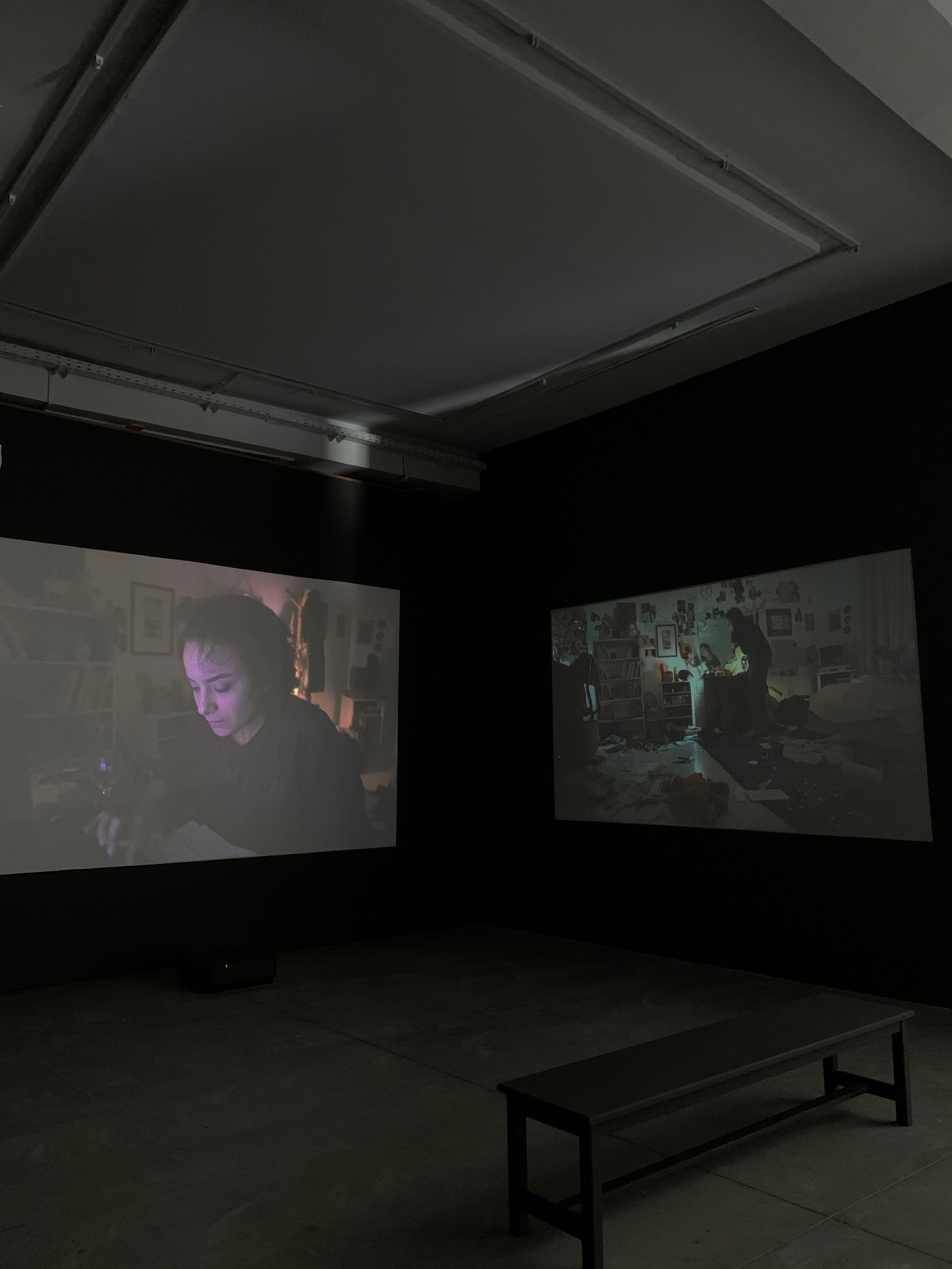 La notion de persona autour de laquelle travaille l’artiste possède assez de plasticité pour aborder de nombreuses problématiques gravitant autour de la notion d’identité et de construction de soi. Il me semble que cet espace d’exposition plongé dans la pénombre permet au. à la spectateur.rice de s’oublier, de laisser disparaitre son propre corps pour devenir successivement Amal puis ALMA. À la fin de ce chemin initiatique, nous avons pris le temps d’oublier dans le noir complet l’imperfection de notre corps et nos propres difficultés.